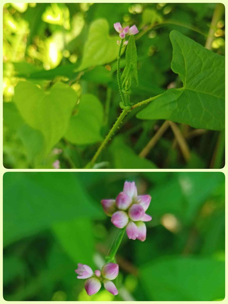 後ろのハート♡の葉っぱ🌿は多分山の芋だと思います。