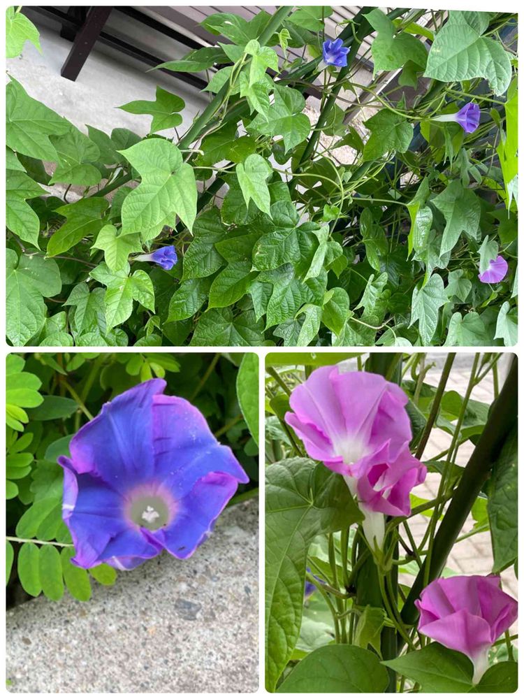 朝顔が、ピンクと紫がかった色の2種類が咲き始めてきました!