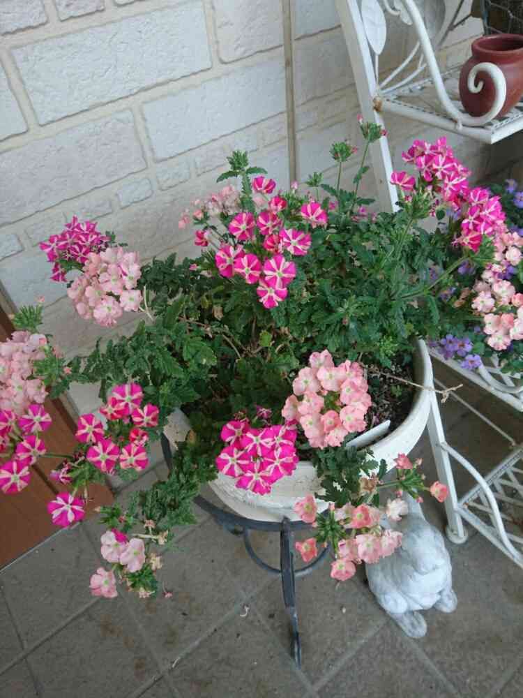 先祖帰りしたサーモンピンクが混ざるバーベナちゃん(笑)