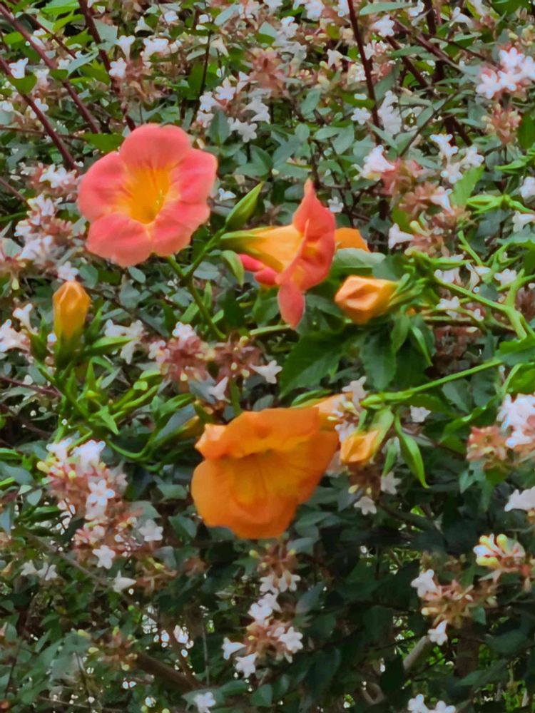 ノウゼンカズラのビタミンカラーが元気が出ますねえ❤️