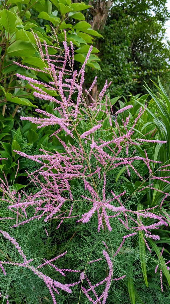 ギョリュウのお花がそよそよと風に揺れて涼やかです🌿🎶