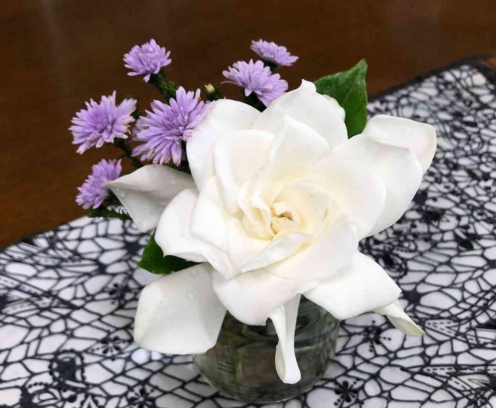 クチナシの花が咲いてたので、摘んで飾りました😊ん〜!甘〜い香り✨