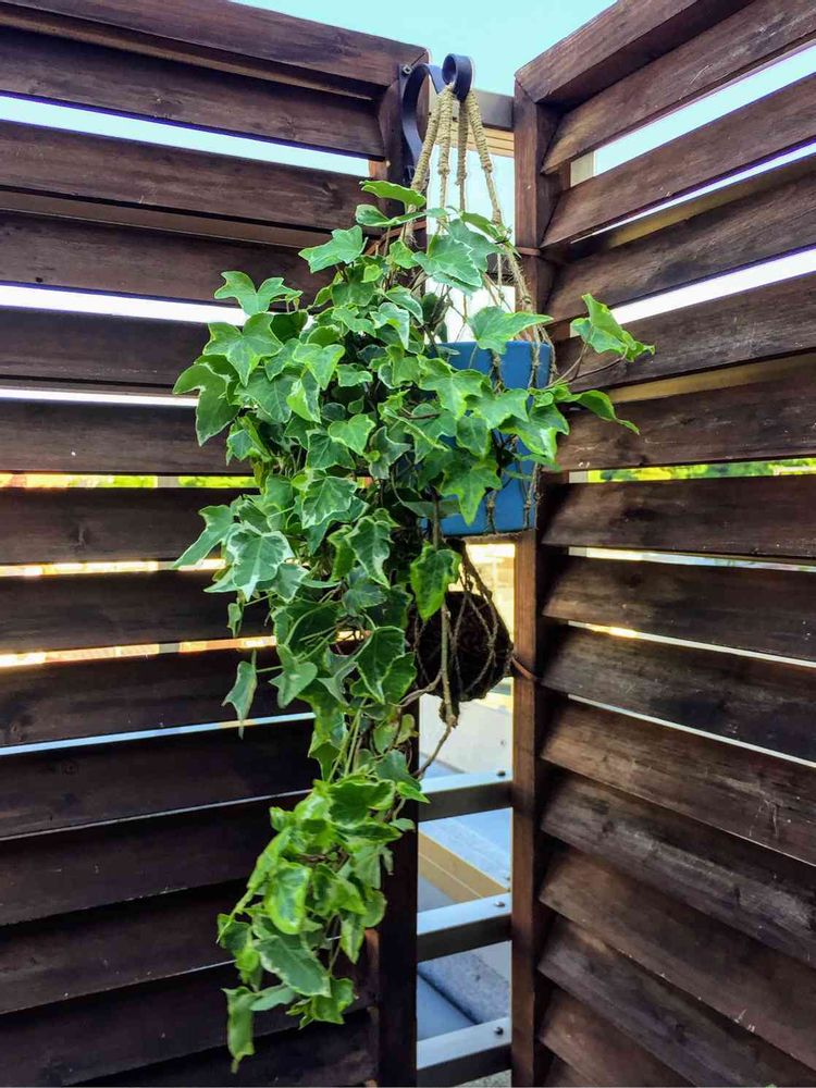 ヘデラがあまりにモサモサになって少し鉢植えに移したのですが💦垂れ下がり系なので置場に困って吊るしてみました😅
