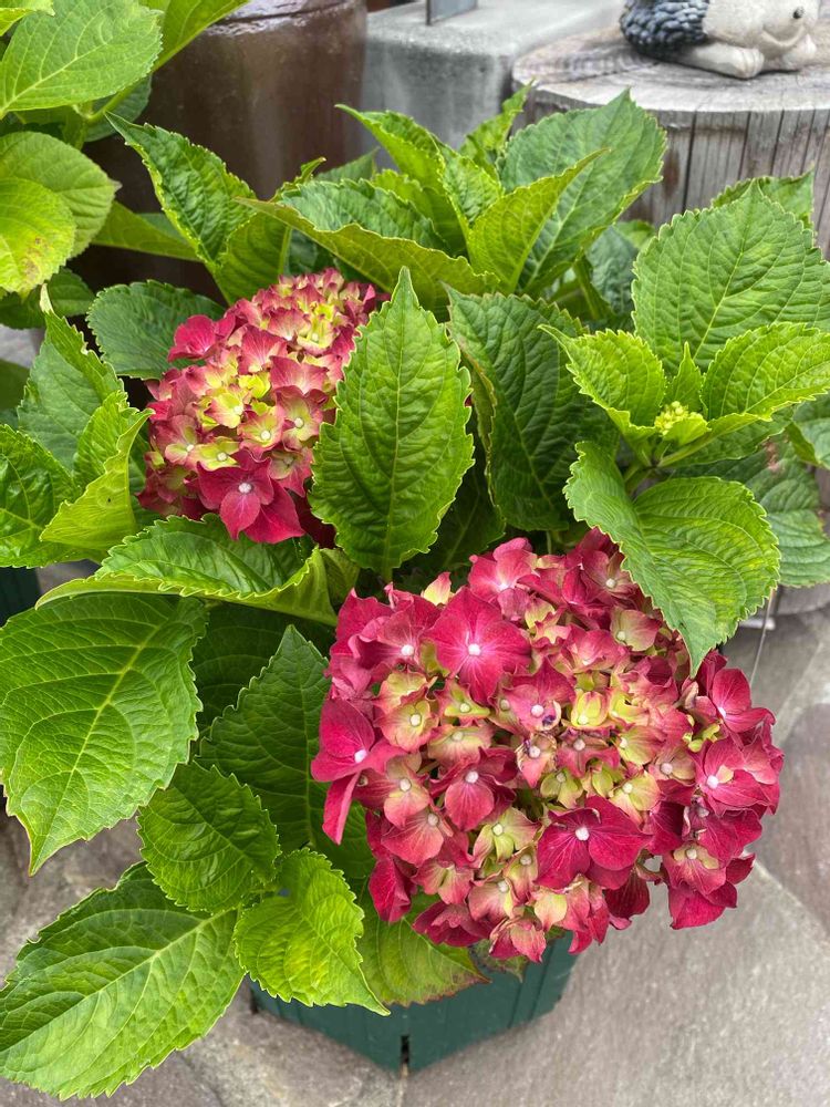 紫陽花で赤色はなかなか見ないので斬新な感じです。紫陽花にしては矮性?らしく鉢植えにも向くそうです☺️