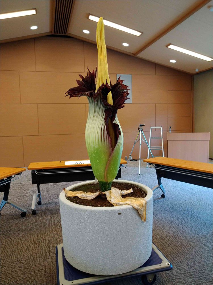 昨年は京都府立植物園で、苦節30年でようやく咲いた💗ショクダイオオコンニャク💗のお花を見て、投稿もしたのですが、今年は、武田薬品工業京都薬用植物園で、2017年に初開花して以来、5年ぶりに開花したということでしたので、見に行ってきました👀