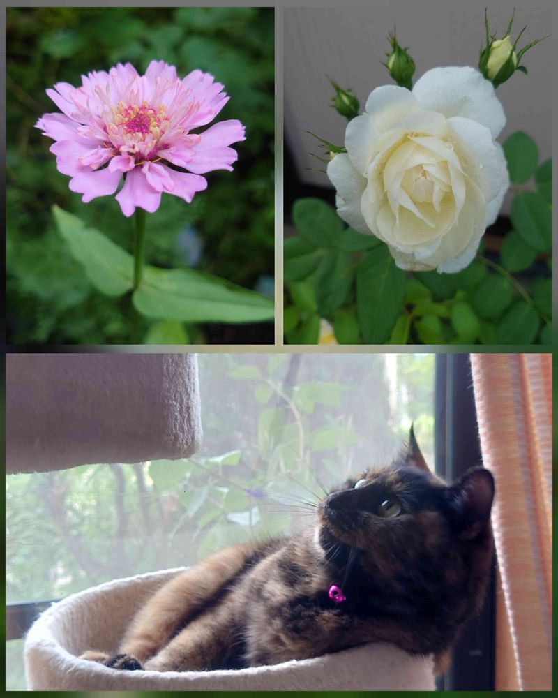 雨が降って生き生きとしたお庭の花たちに想いを馳せているんでしょうか😸
