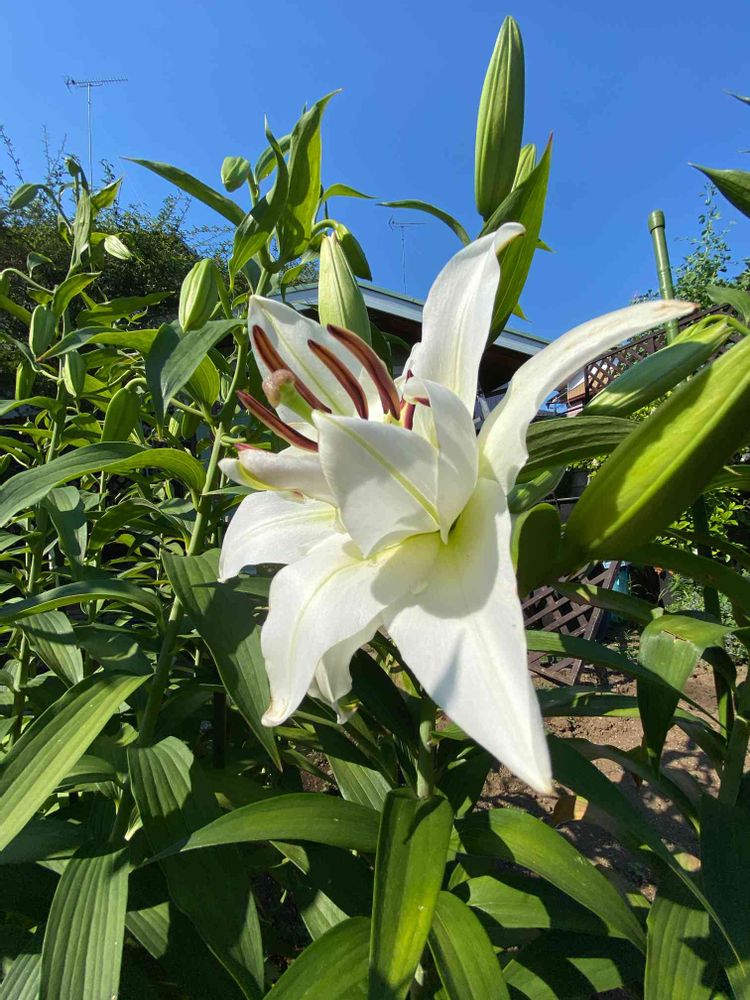 大きさも去年は直径30センチあったけど、今年は一回り小さく感じる。ただ蕾が10個くらいある。頑張って全部咲いてね。