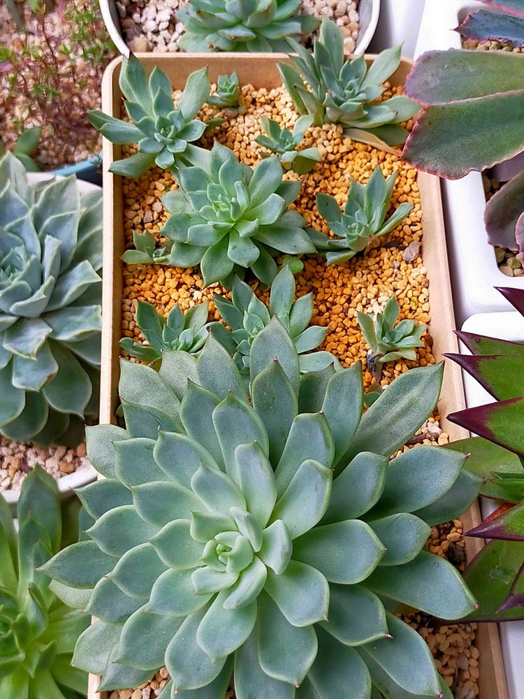 春に親離れさせた子株たちもみんなしっかり根付いてくれてお母さんと一緒のプランターで並んでます😄🎶