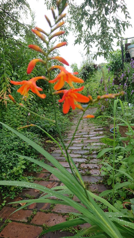 ヒメヒオウギスイセン(クロコスミア)が咲いてます。