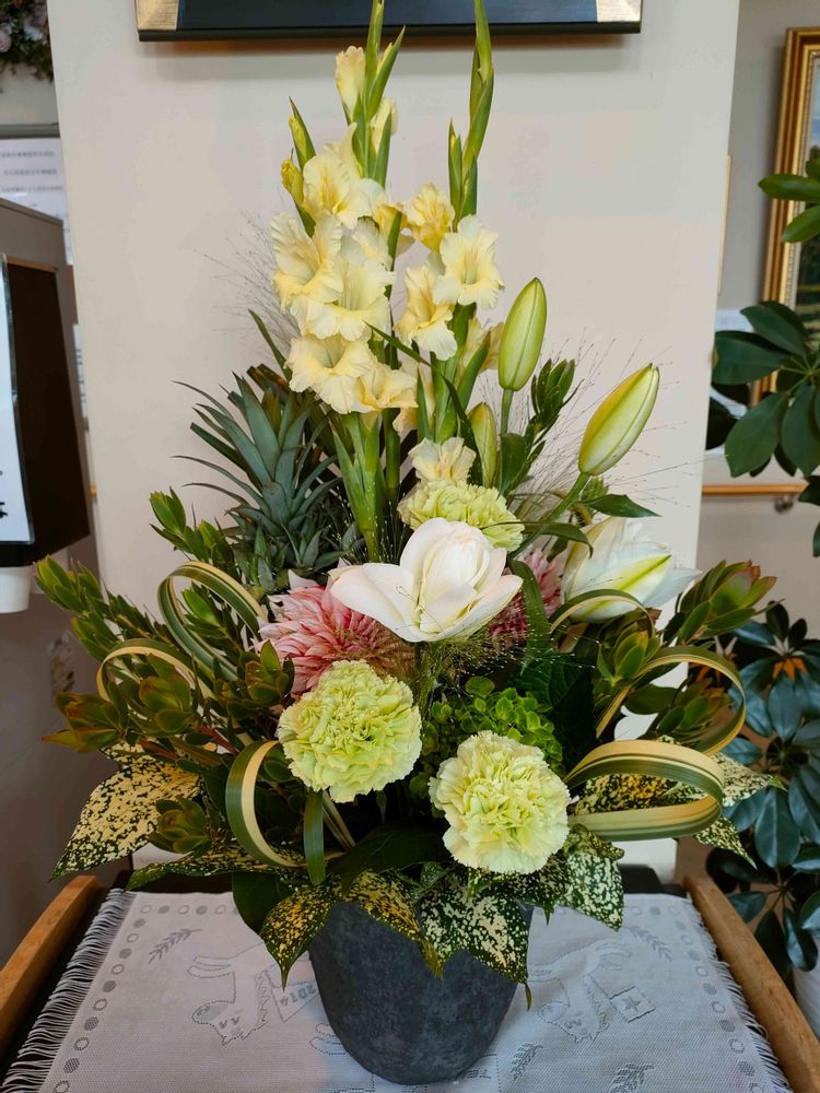 薄い黄色のグラジオラスの優しい色に、癒やされま〜す。🥰