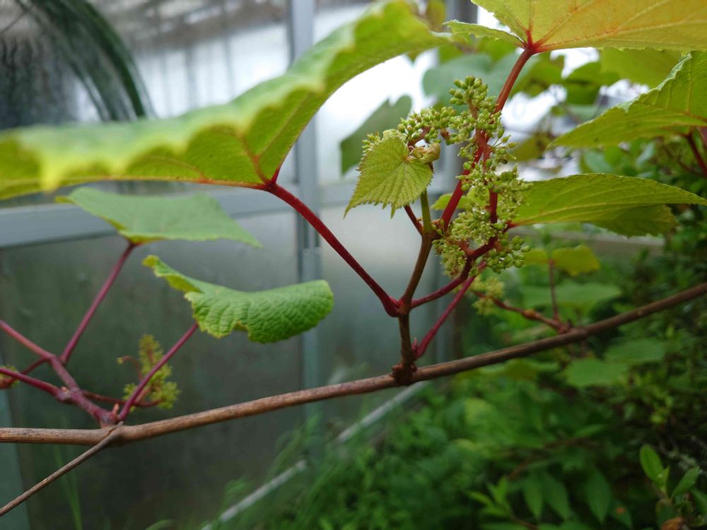 勝手に生えていた山ぶどうに花が咲きました!最近は自然下でも、実を付けるツルを見つけるのに苦労します。