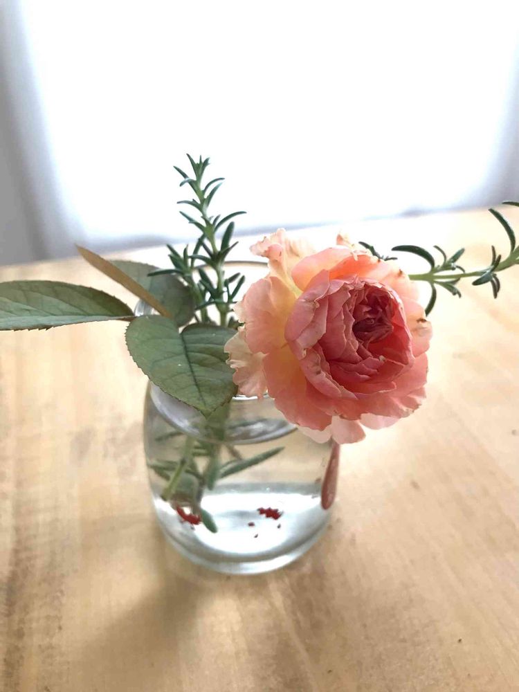 キッチンのプリンの空き瓶にローズマリーを挿していたので、突っ込んでおいたら咲きました✨