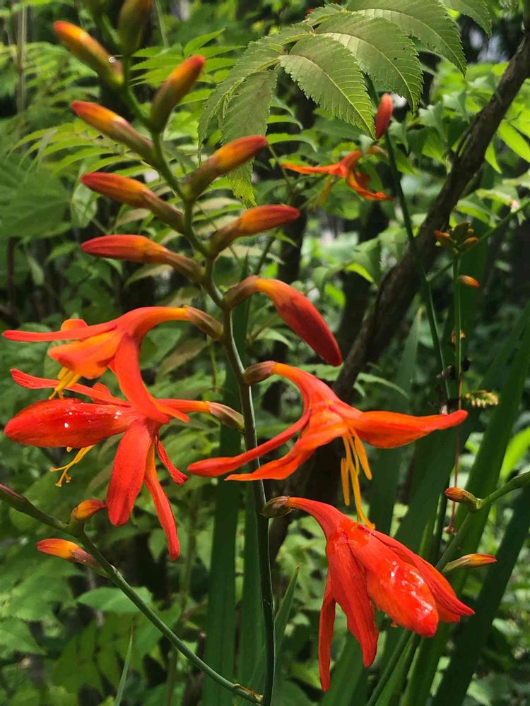 ヒメヒオウギズイセンの濃いオレンジが緑に映えます