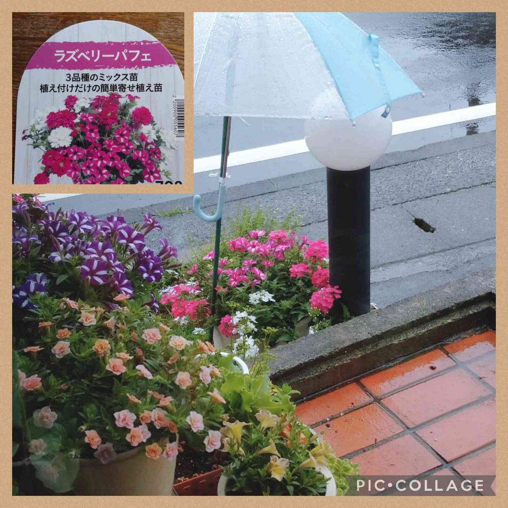 手前の鉢は軒下に避難させたのですが、「ラブベリーパフェ」は10号鉢なので、重いし避難させる場所がない😭