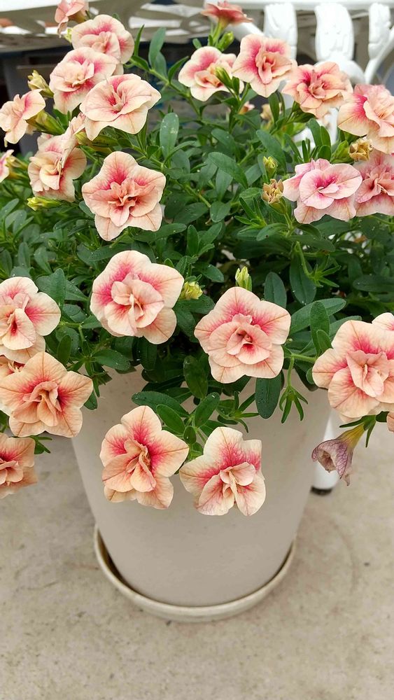 八重のペチュニアかと思って見ていたけれどこれもミリオンベル…カリブラコアなのですね〜(*˘︶˘*).。.:*🍓この色合いのミリオンベルまだ見たことないです💗