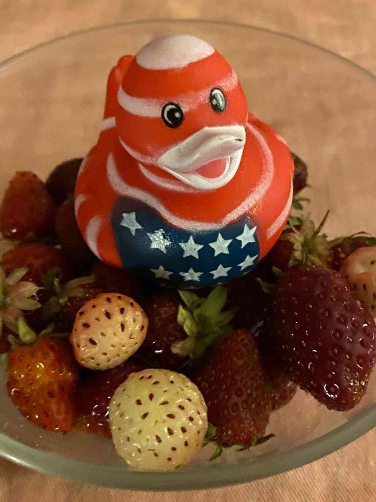 今日畑で採って来たイチゴ🍓とアメリカ国旗
