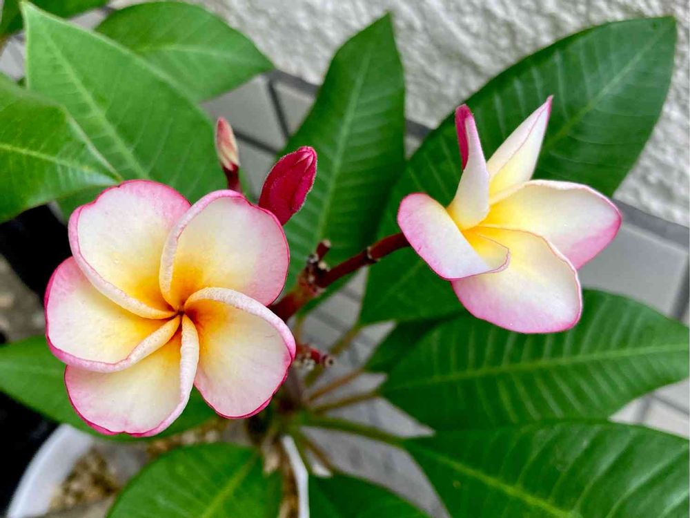プルメリア咲きましたが、☔️で可哀想😅