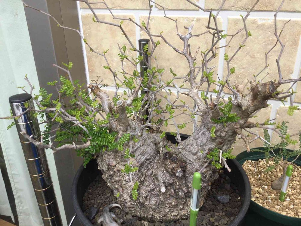 先月末に始まった猛暑で、ようやく株全体に葉っぱが出てきました。