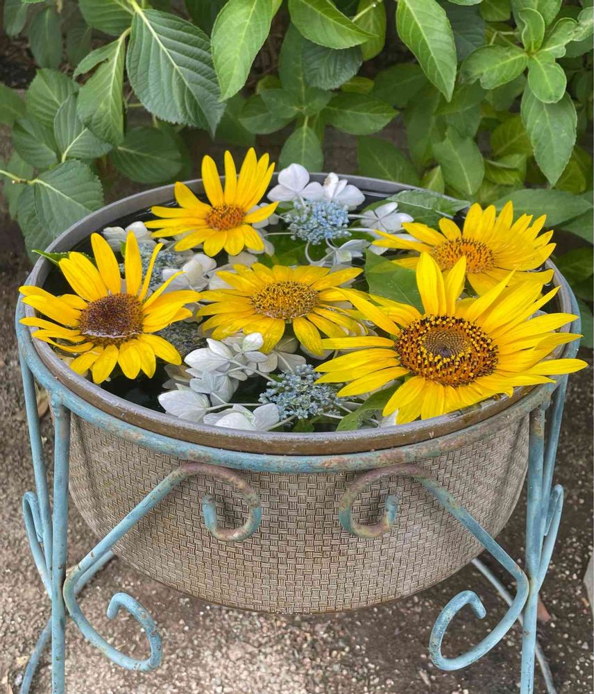 ひまわりの花手水なんて見たことない‼️素敵〜😭✨✨