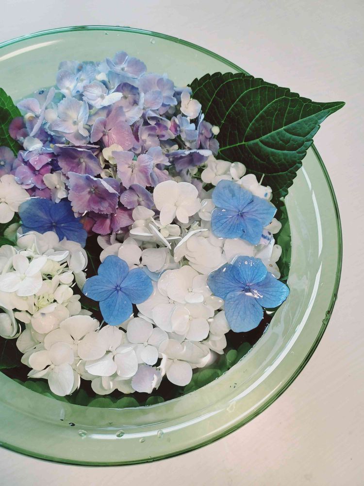 シンプルなうつわだからこそ 紫陽花の彩りがいかされるよね☺️🎵