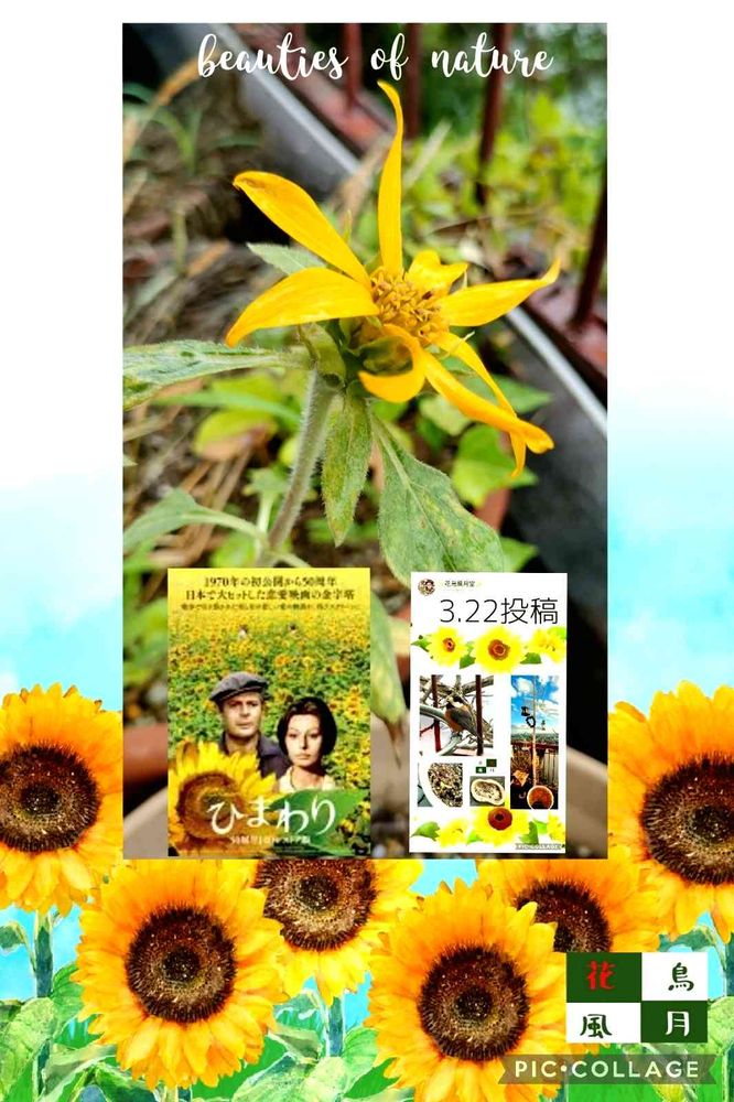 ベランダのプランターに背丈約30cmの貧弱で変な🌻が咲きビックリ(@@) 3月22日GSに投稿したように,我が親友?ヤマガラ🐦のヤマちゃんが餌の🌻の種の貯食行動で土の中に埋め咲いたもの。🌻畑で見かける、太陽に向かって元気に咲くものとは大違い😿