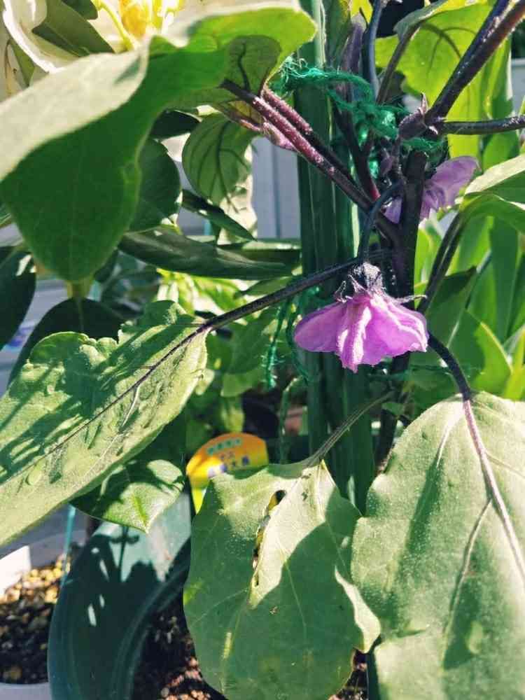 茄子の花が咲いてきました🎵第一花、初めての実は早めに摘み取ります✨