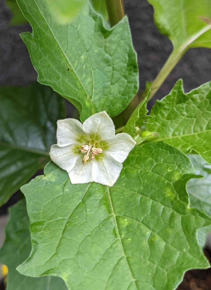 真っ白なホオズキのお花が可愛いですね😊🤍❀🌿