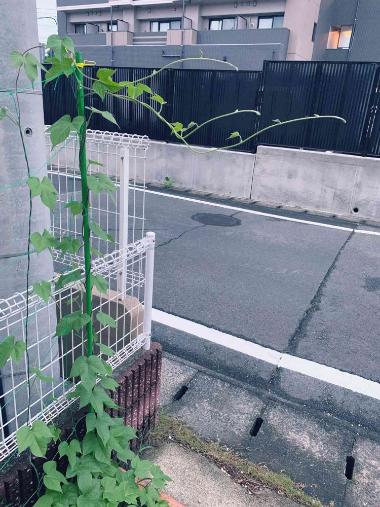 台風🌀の影響も無く平穏な朝を迎え、家の端に植えているアサガオ?ユウガオ?が大きく育っていました〜🌱この先端はどこに向かって行くのだろ〜って感じです🤣🤣