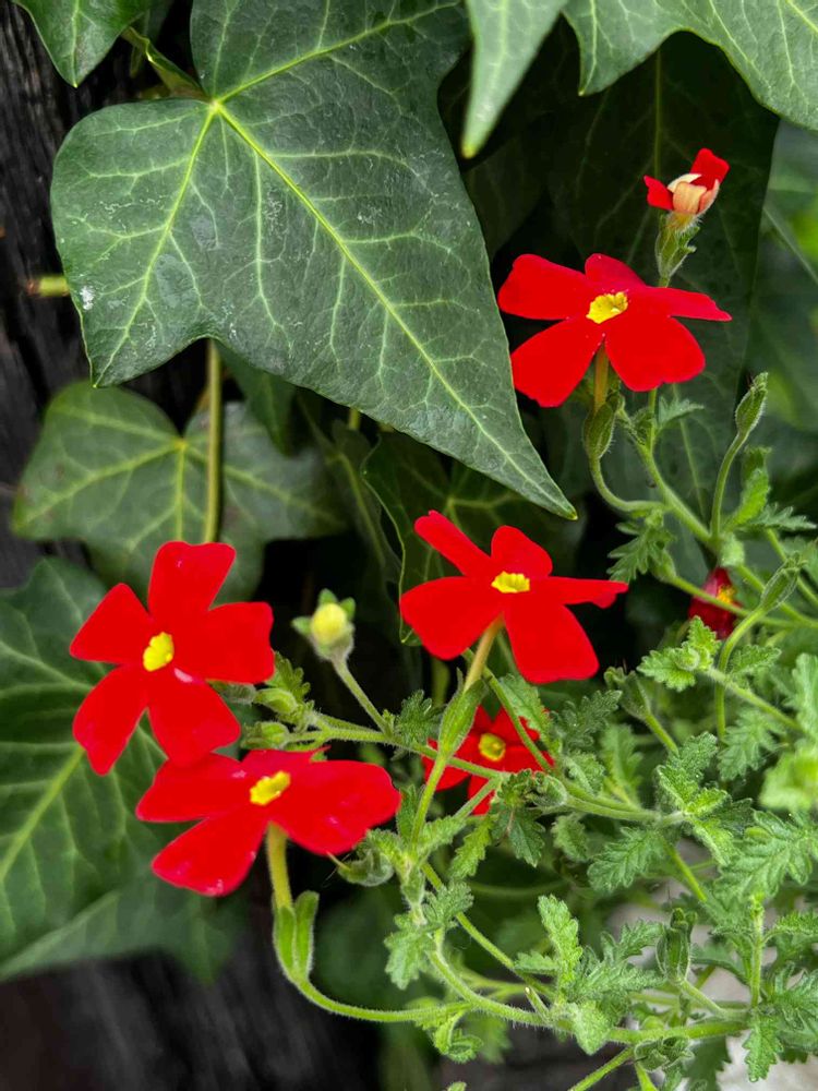 子供がクレヨンで🖍書くような5枚の真っ赤な花びらが可愛いサンプリテニア❤️
