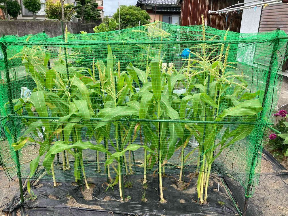 猿対策にネットの柵、ガラスには上部分に糸を張っています。