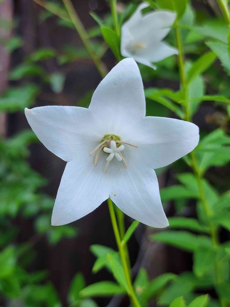 白いキキョウは、いつも清楚で涼しいお顔で咲いています😊