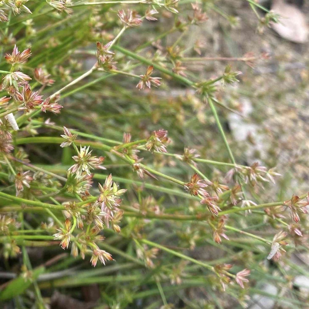 よく似て茎が丸いのはハリコウガイゼキショウ。茎が丸く、頭花に花が2~3個ずつしかつかないのはアオコウガイゼキショウ。