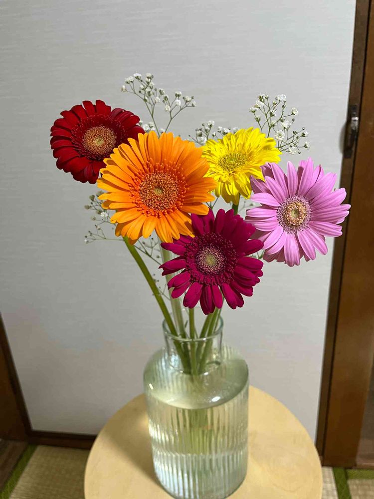 ガーベラを買いました💕かすみ草はオマケでしてもらいました😊