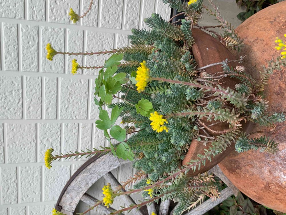オダマキと、黄色の花のシルバーペット又の名をレフレクサム多肉さんです🌼🌼名前がわかって良かったです🍀🍀