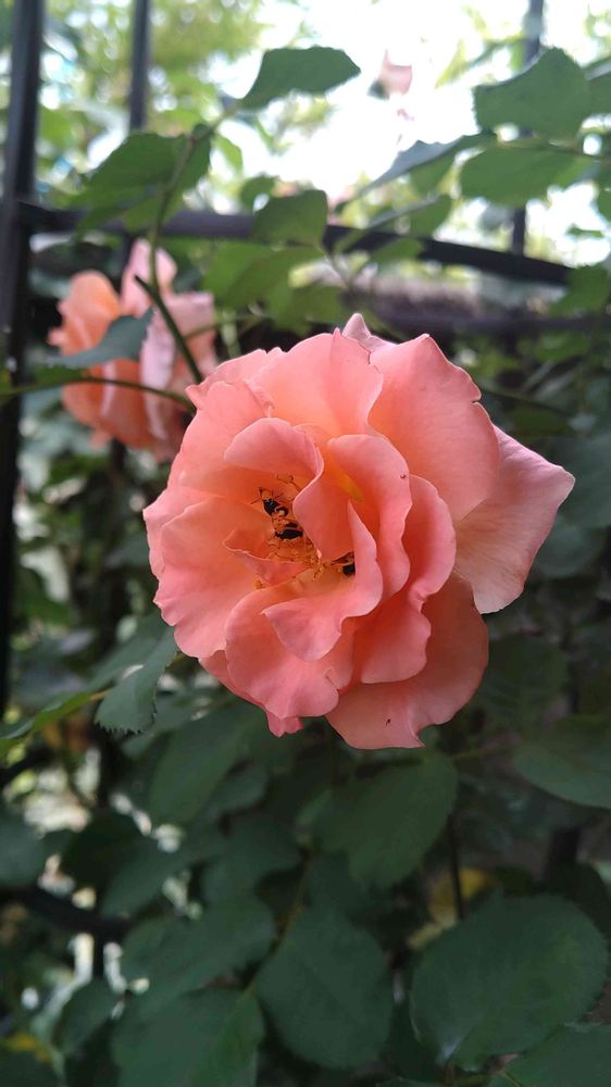 玄関ドアを開けると、目の前に良い香りの2番花が可愛く咲いていました〜🌹