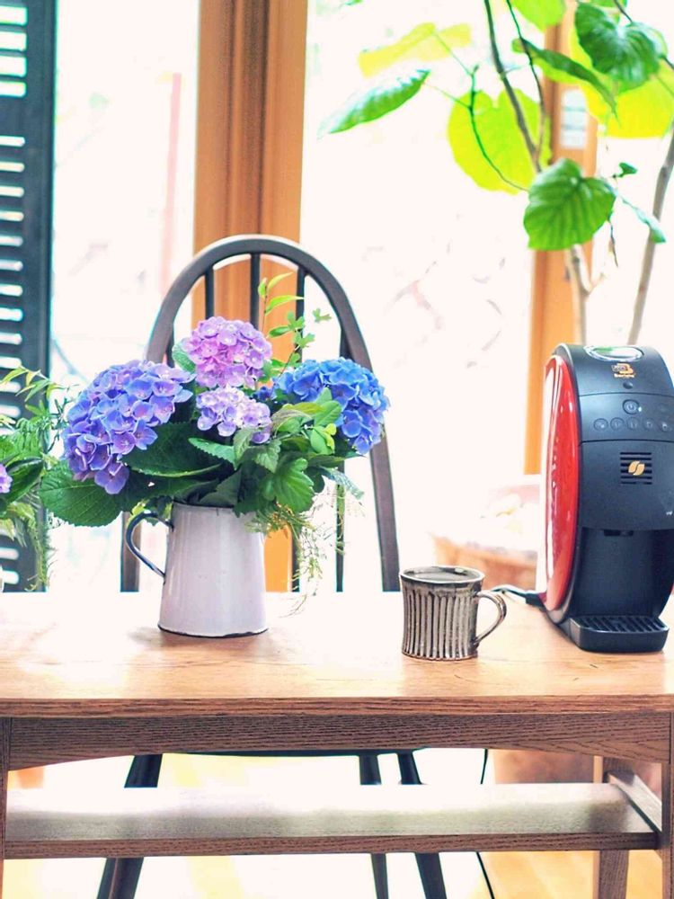 天気が荒れてる中で倒れてる紫陽花を摘んできました💦色々挿してたら楽しくなっちゃって♪ずぶ濡れ😅💧実際はこんな優雅な感じじゃなくて、温まるために珈琲を飲んで癒されました💓投稿用にカッコつけちゃった👅♪でもやっぱり好きな珈琲を飲んで…ホッとする時間が何より贅沢な時間ですね~(*^-^*)♥