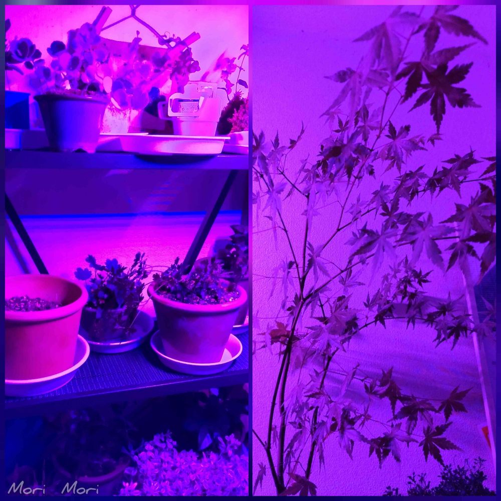 ベランダの植物をすべて退かさないとダメなので、小さな鉢は玄関の棚に並べて育成ライトを。大きな鉢は外の植栽仮置き場へ。これが後2ヶ月程続きます😐