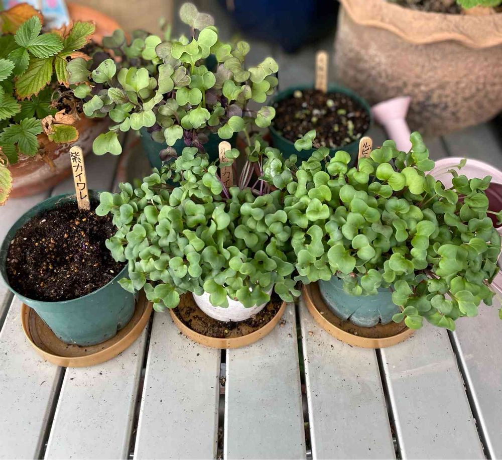 バルコニー/ベランダ,ルビーカイワレ大根栽培,紫カイワレ大根栽培の投稿画像