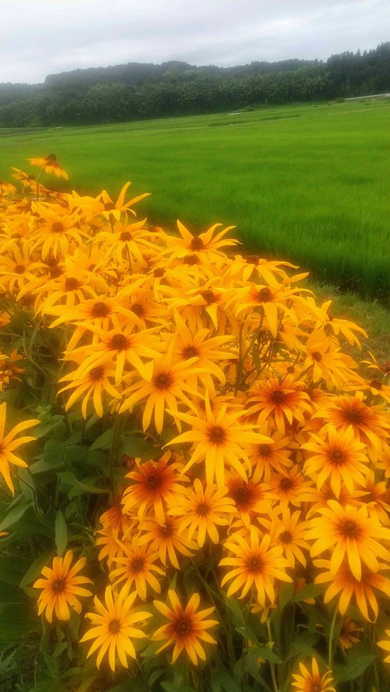 ルドベキアもすごいけれど向こうに広がる田んぼもとっても綺麗なの😃🌿🌸
