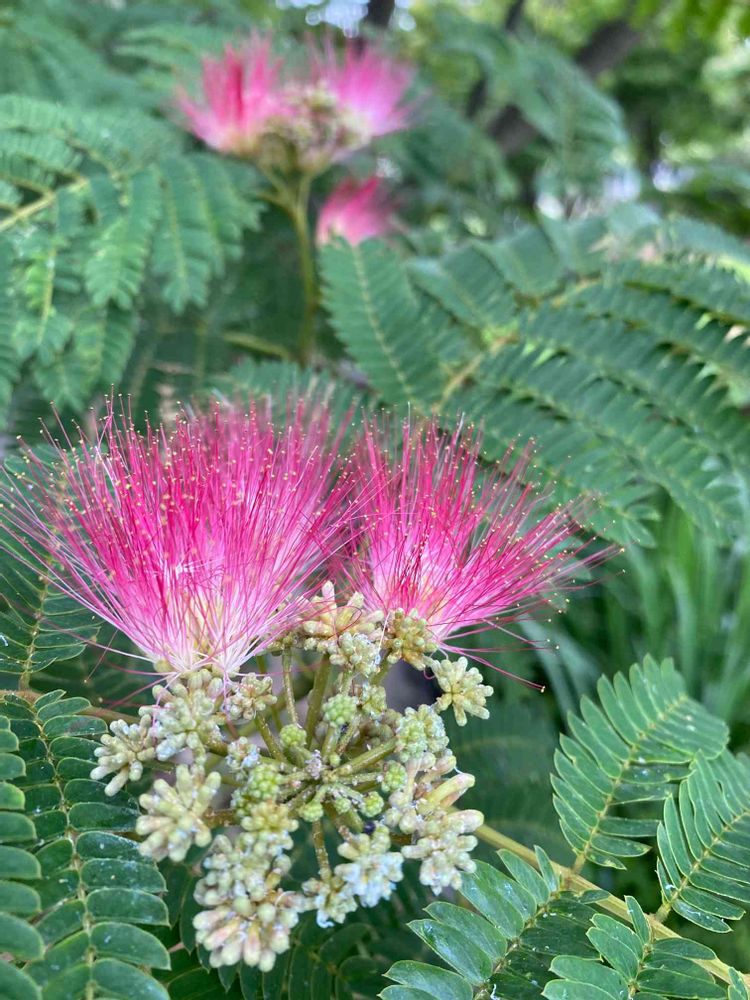 合歓の木遠目でしか見た事なくて嬉しいです😃ピンク色がお花なんですか?😱