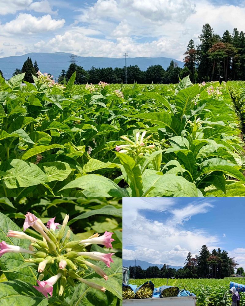 あまり煙草の畑はあまり見かけませんが 葉を一枚一枚ていねいに収穫されている農家さんに会いました。