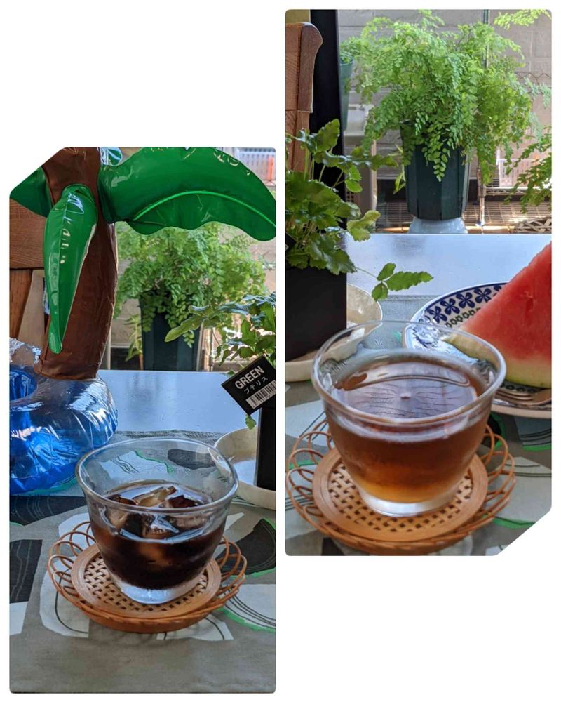 スイカとアイスコーヒーと麦茶をどうぞ 🍉☕🍵🥤