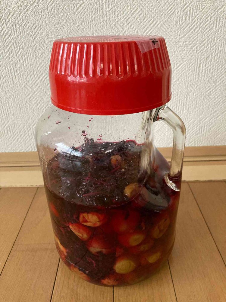 エグ味が残った時があり、青梅で漬けるとエグ味が出ると聞いたので、今年は熟するまで置いたらちょっと柔らかくなり過ぎたようです💦