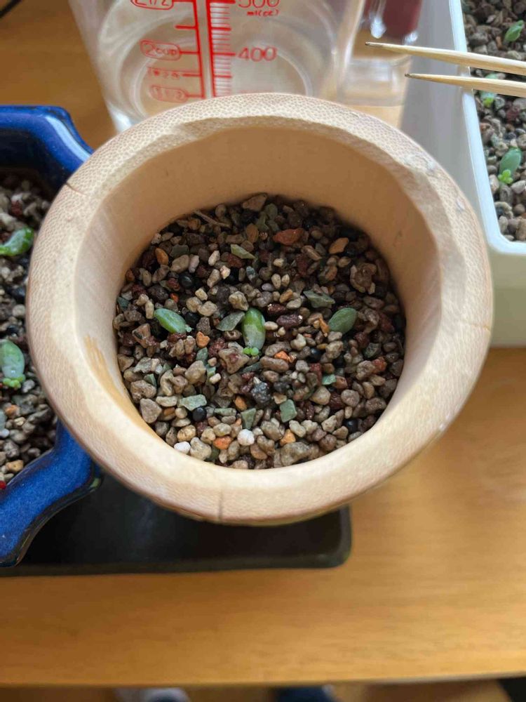 竹に多肉植物、第一弾。