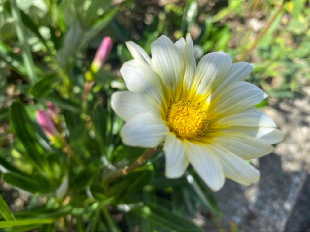病院の小さな花壇に白いガザニア🤍まだまだ元気元気♪