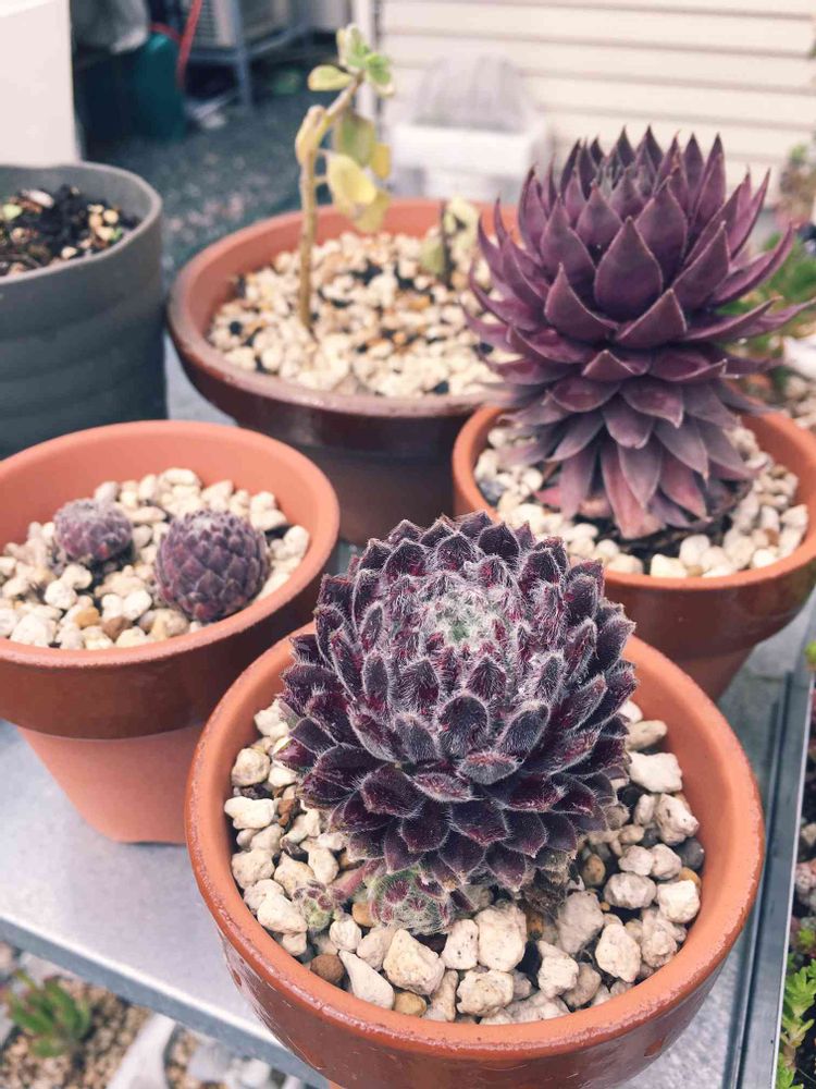 センペルさんちっちゃいこみつけた!一番後ろのアロマティカスはこのあと引っこ抜きました。。うしろのパンクなセンペルさんはどうなっちゃうんだろう。。