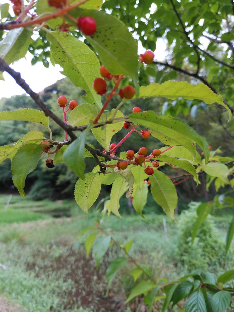 明らかに山桜の実ではないと思ってpicを取りましたが、何でしょうか?木肌が全然違っていたので未知の木がまだあったかなと思ったりしました。大草生きものの里にて。