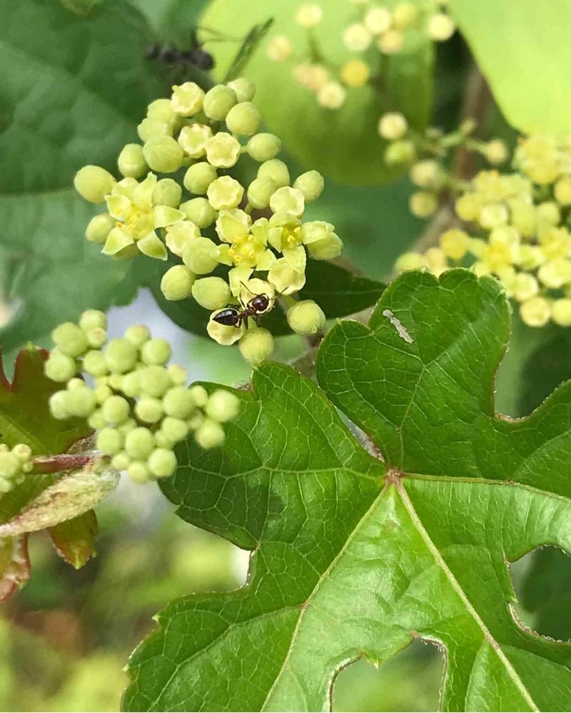 垣根の所のキレハノブドウに今年はたくさん花がついてます。