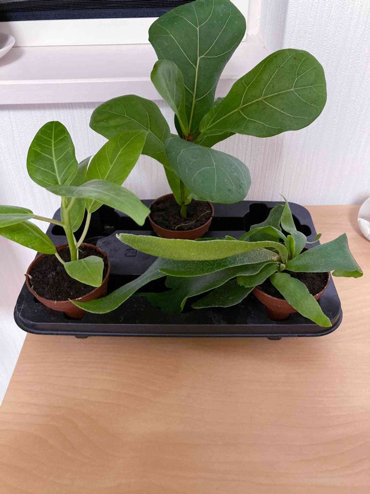 左から、フィカス・イエロージャム、フィカス・ライラータ、コウモリラン
