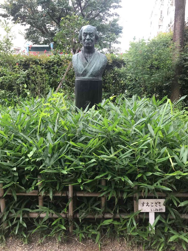 スエコザサは牧野富太郎が妻、壽衛への感謝と愛情を込めて付けた名前です。牧野富太郎をかげで支えて来ましたか55歳で亡くなっています。この練馬区牧野記念庭園は住居だった場所ですが彼女は二人で3年ぐらいしか住んでいませんでした。でも今では牧野博士の胸像とスエコザサが一緒に寄り添っています。